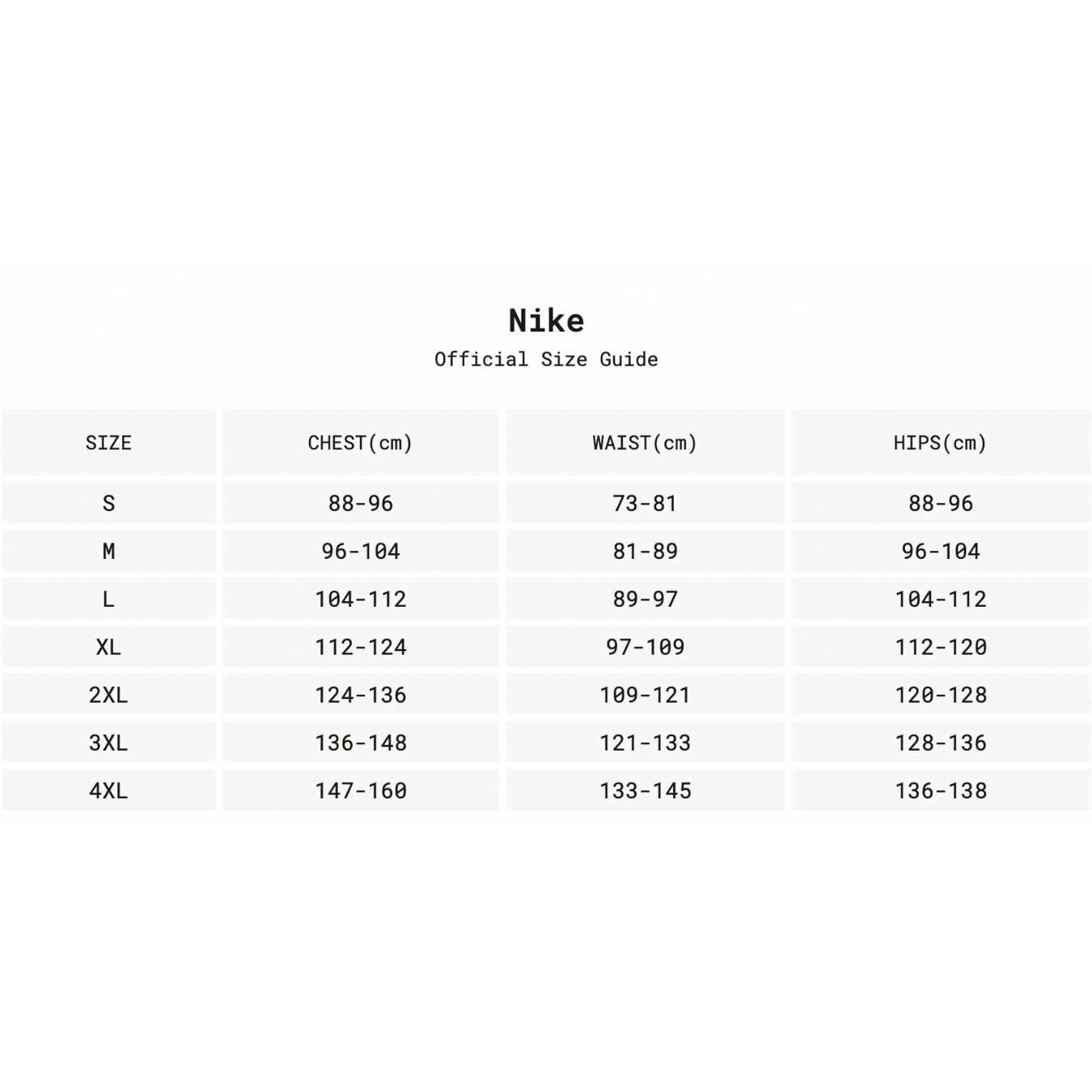 L, M, S, XL